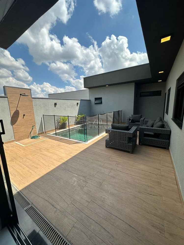 Casa com arquitetura moderna e ambientes amplos e integrados.
