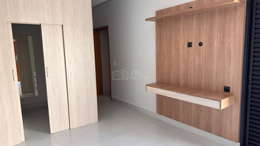 2ª suíte com painel para TV, bancada e armários;