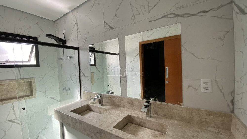 Banheiros das suítes completos, com bancadas em granito, box, chuveiros e acessórios.